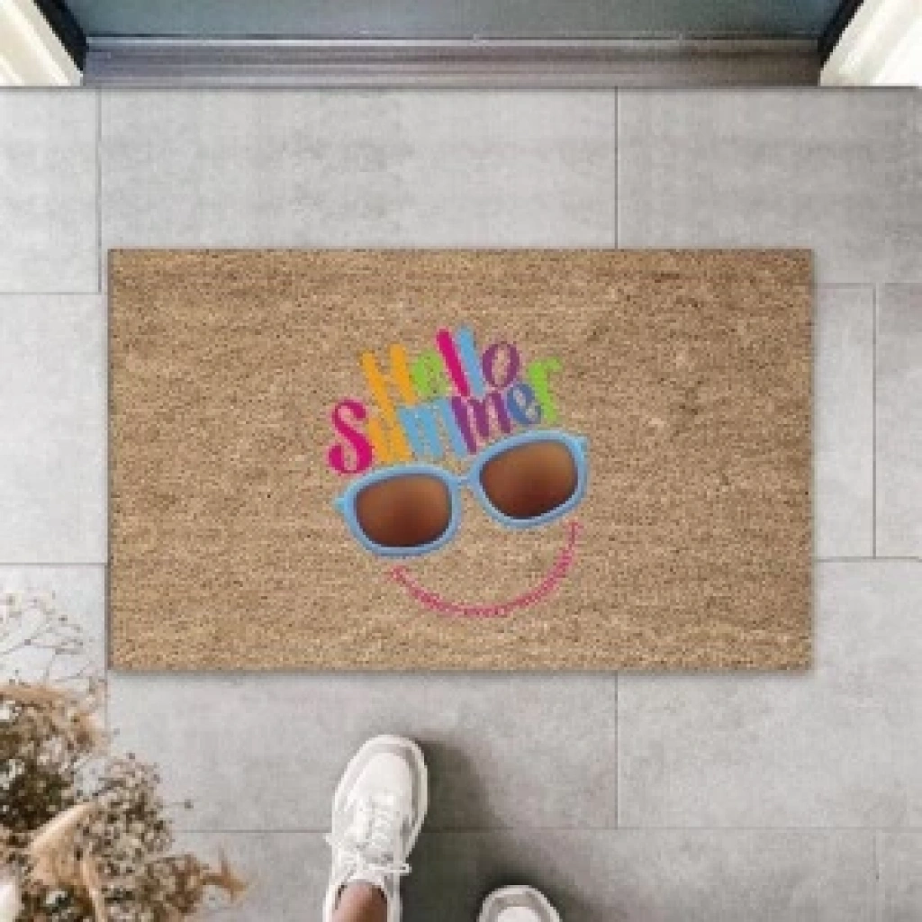 Kahverengi Kapı Önü Paspası Hello Summer Gözlük Desen K-3266