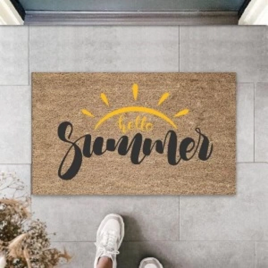 Kahverengi Kapı Önü Paspası Hello Summer Güneş Desen K-3270
