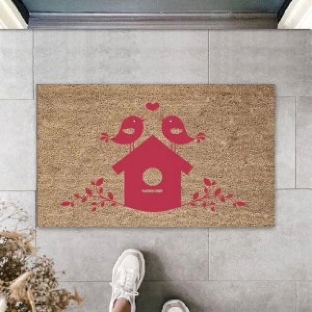 Kahverengi Kapı Önü Paspası Kuş Evi Desen K-3218