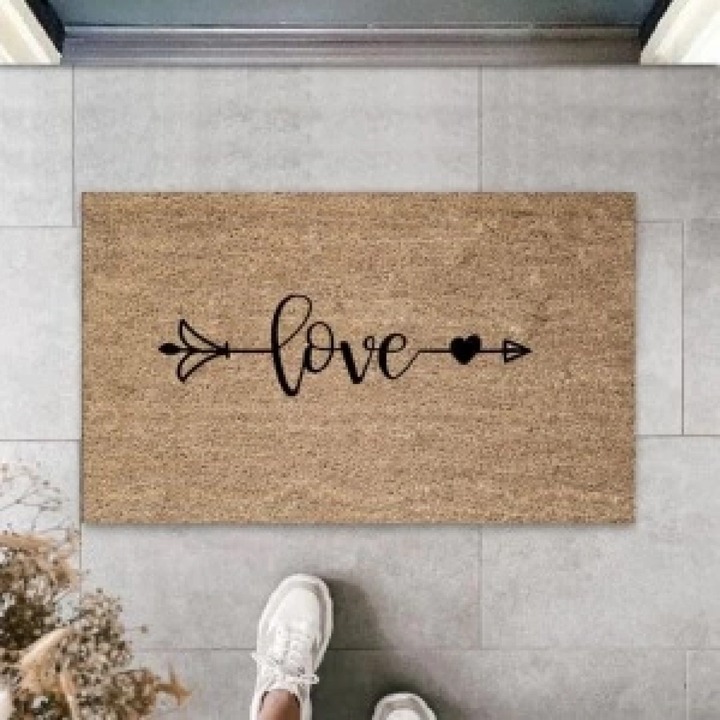 Kahverengi Kapı Önü Paspası Oklu Love Desen K-3306