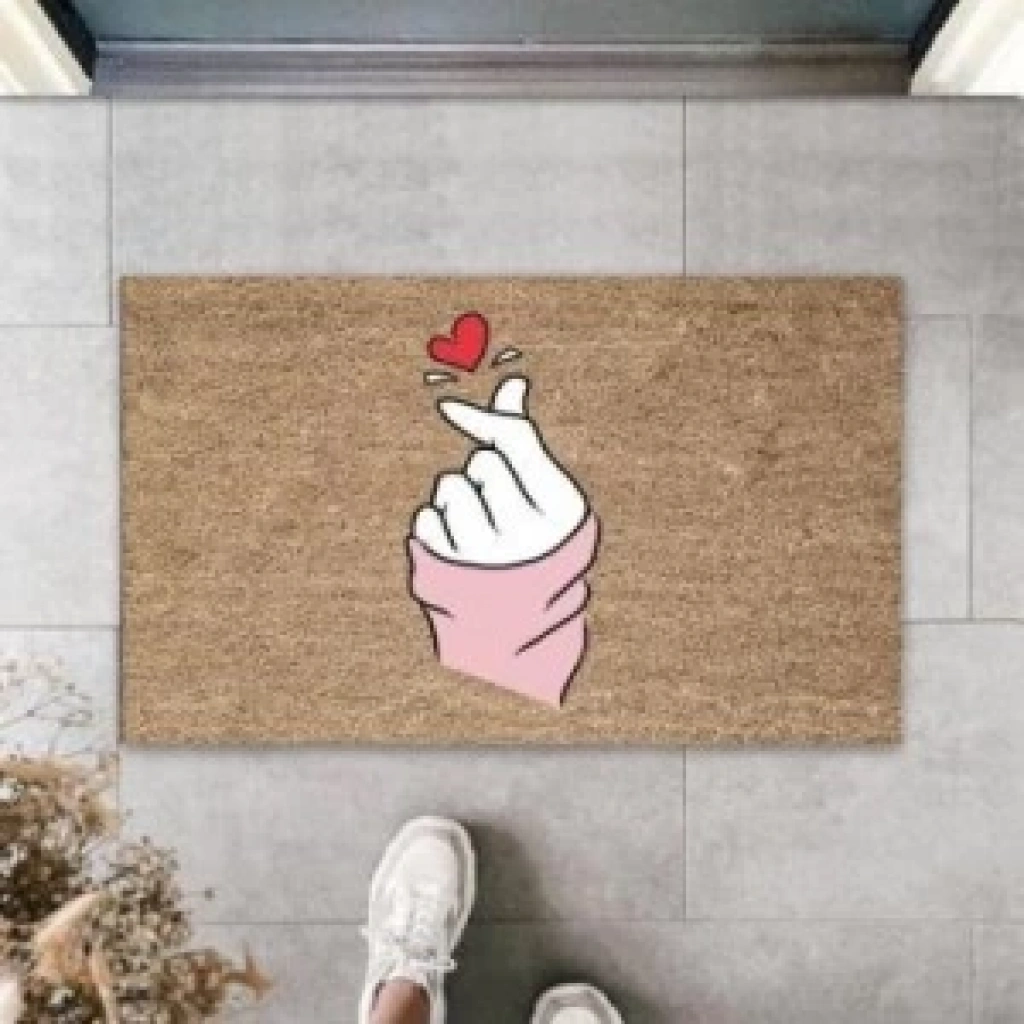 Kahverengi Kapı Önü Paspası Parmak Kalp Figürü Desen K-3234