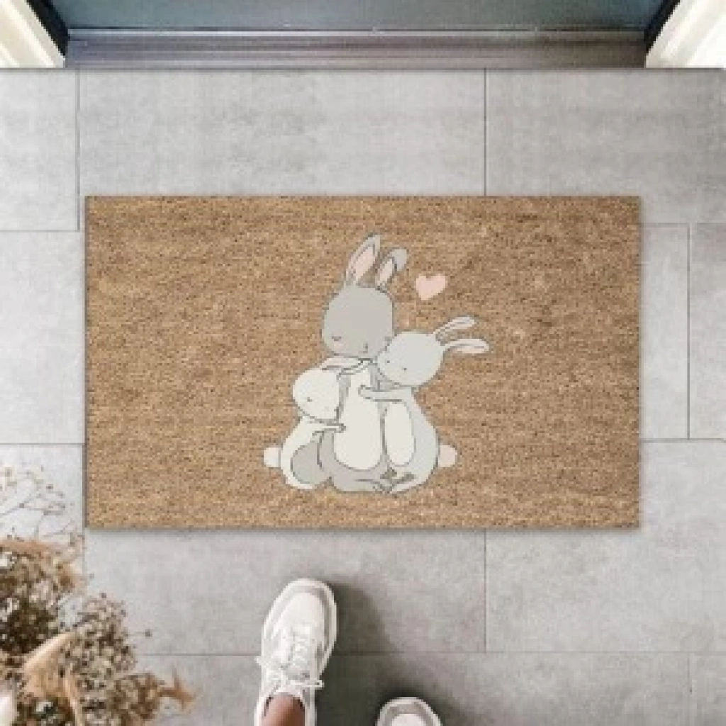 Kahverengi Kapı Önü Paspası Tavşan Ailesi Desen K-3224