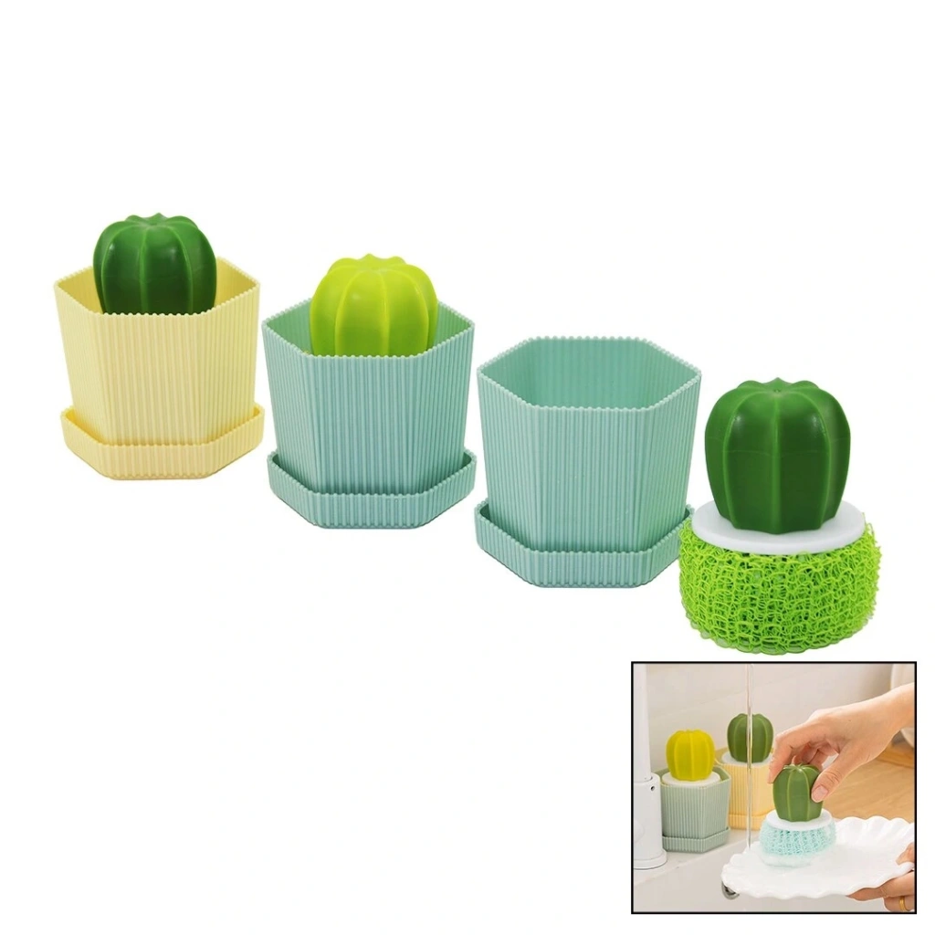 KAKTÜS MODEL SAPLI SERT - RENKLİ PLASTİK TEL BULAŞIK FIRÇASI RENKLİ PLASTİK TABAKLI HAZNE (5047)