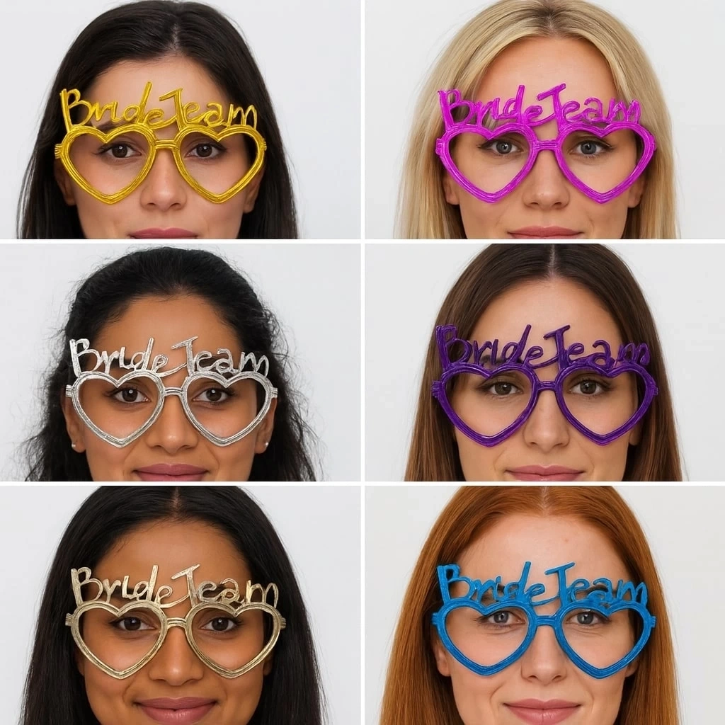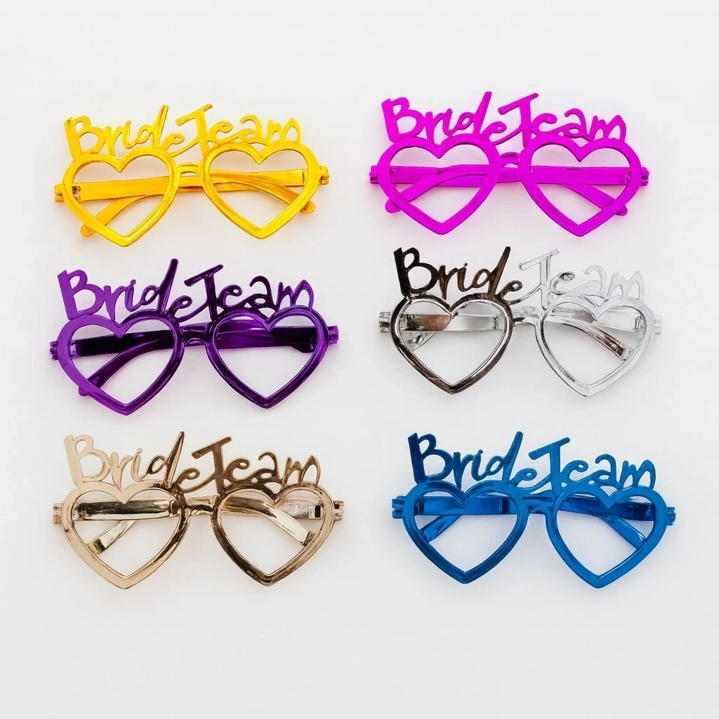 Bekarlığa veda, kına gecesi, düğün partileri veya gelin kutlamaları için mükemmel bir aksesuar Bride Team yazılı kalpli gözlükler ile arkadaş grubunuzu renklendirin. Parlak ve dikkat çekici 6 farklı renk seçeneğiyle her stile uygun. Hafif ve rahat yapısı sayesinde uzun süreli kullanıma uygundur. Fotoğraflarda harika görünür, partinizin enerjisini artırır