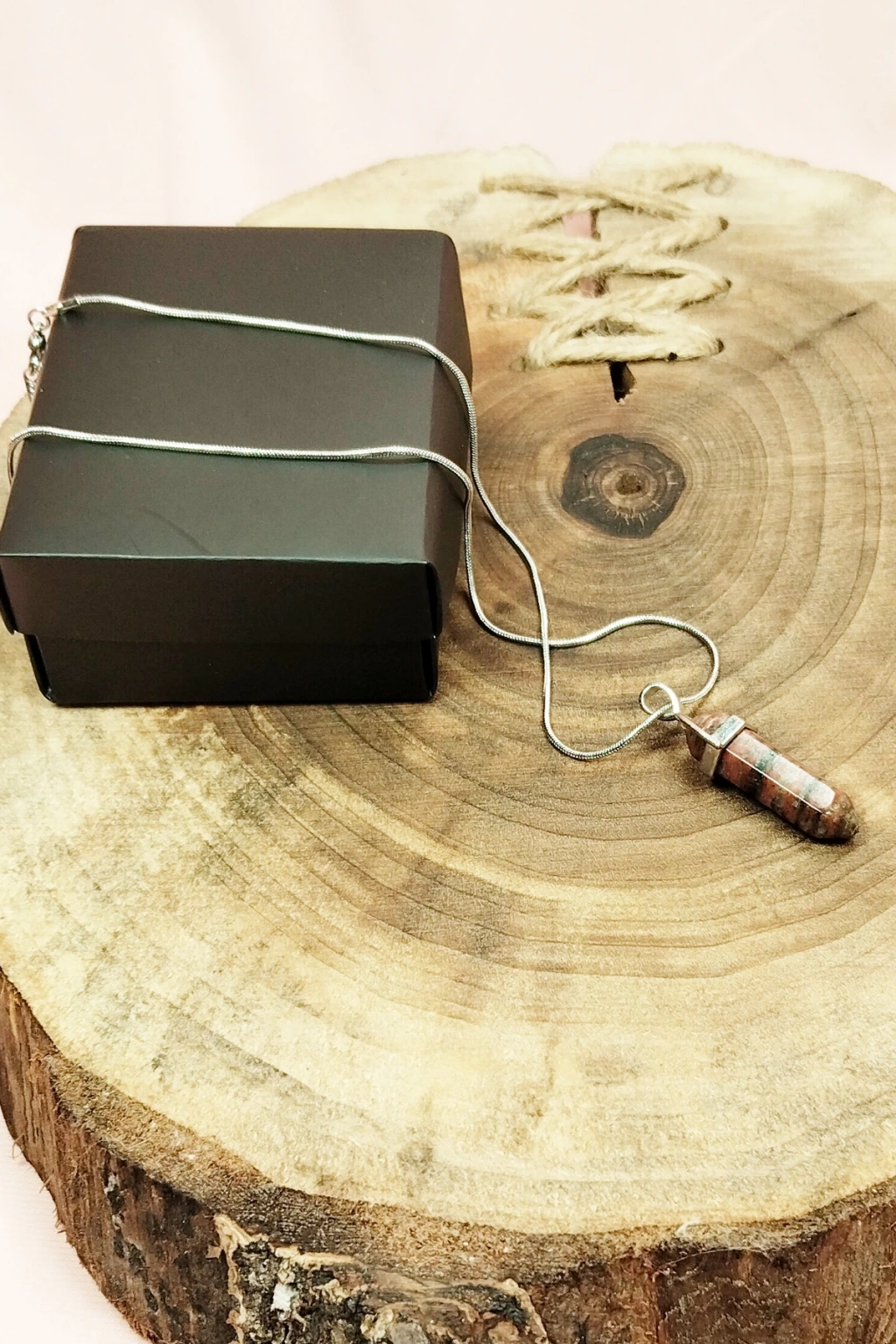 Pembe Akit Doğal Taşı Zincirli El Yapımı Tasarımlı Kolye Uç: 3,5 cm Zincir: 20 cm Kutulu