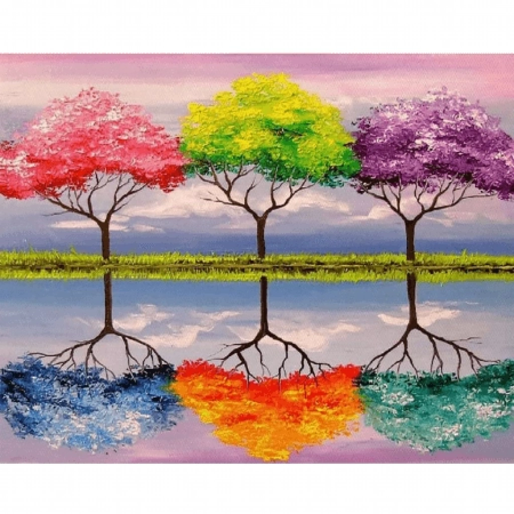 Kanvas Sayılarla Boyama Seti Kasnaklı-çerçeveli 6 Ağaç
