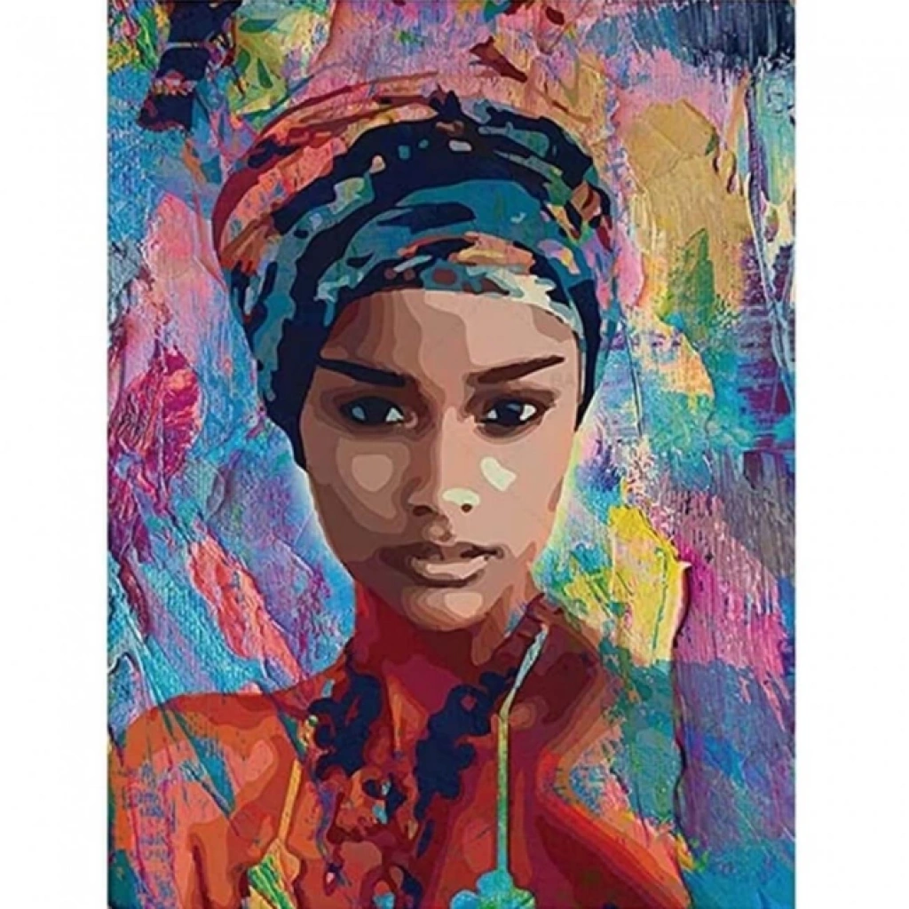 Kanvas Sayılarla Boyama Seti Kasnaklı-çerçeveli Afrikalı Güzel 6