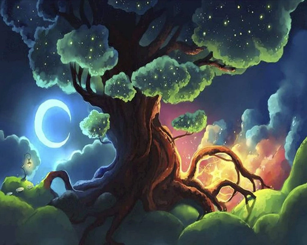 Kanvas Sayılarla Boyama Seti Kasnaklı-çerçeveli Ağaçtaki Enerji Sayılarla Boyama