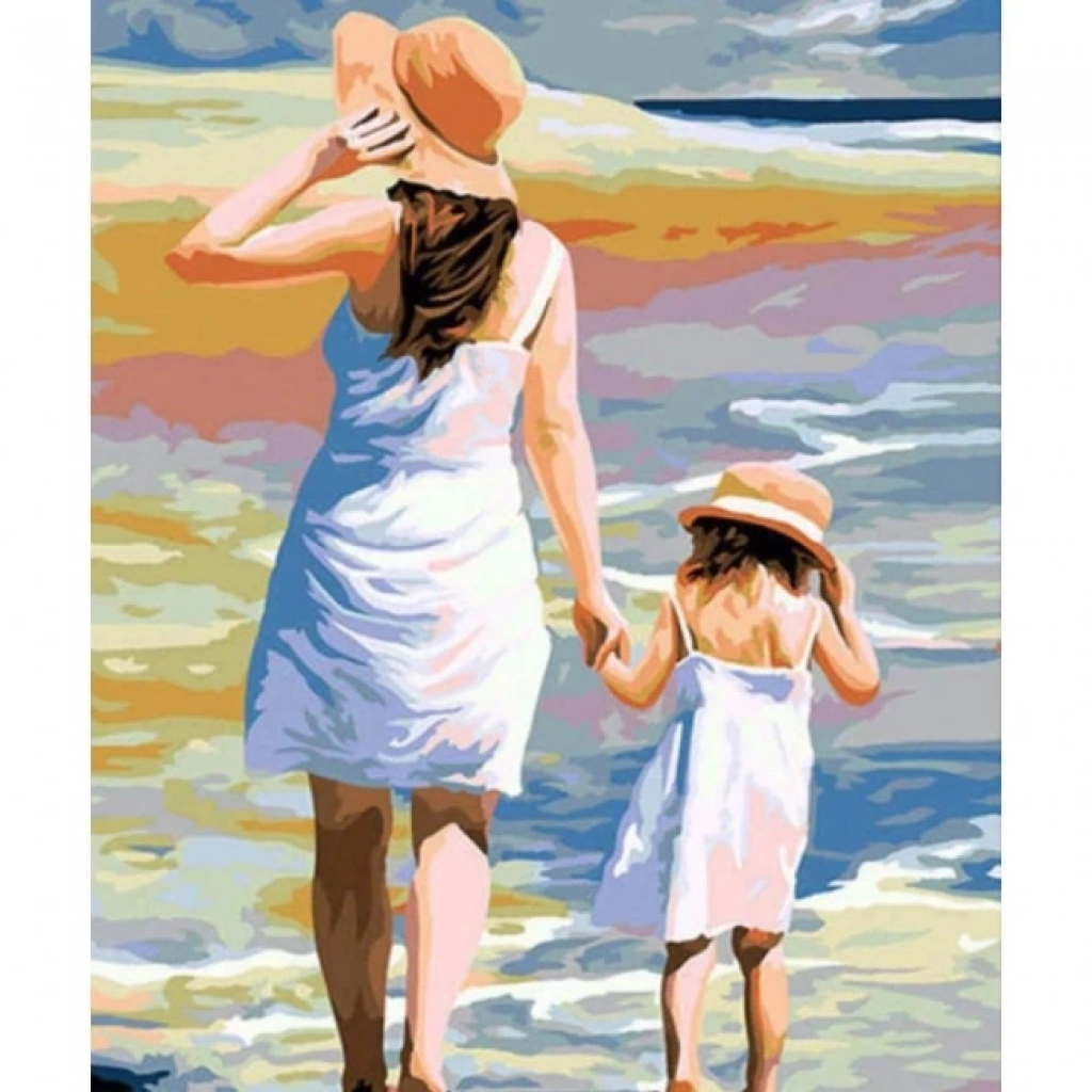 Kanvas Sayılarla Boyama Seti Kasnaklı-çerçeveli Anne Ve Kız Boyama
