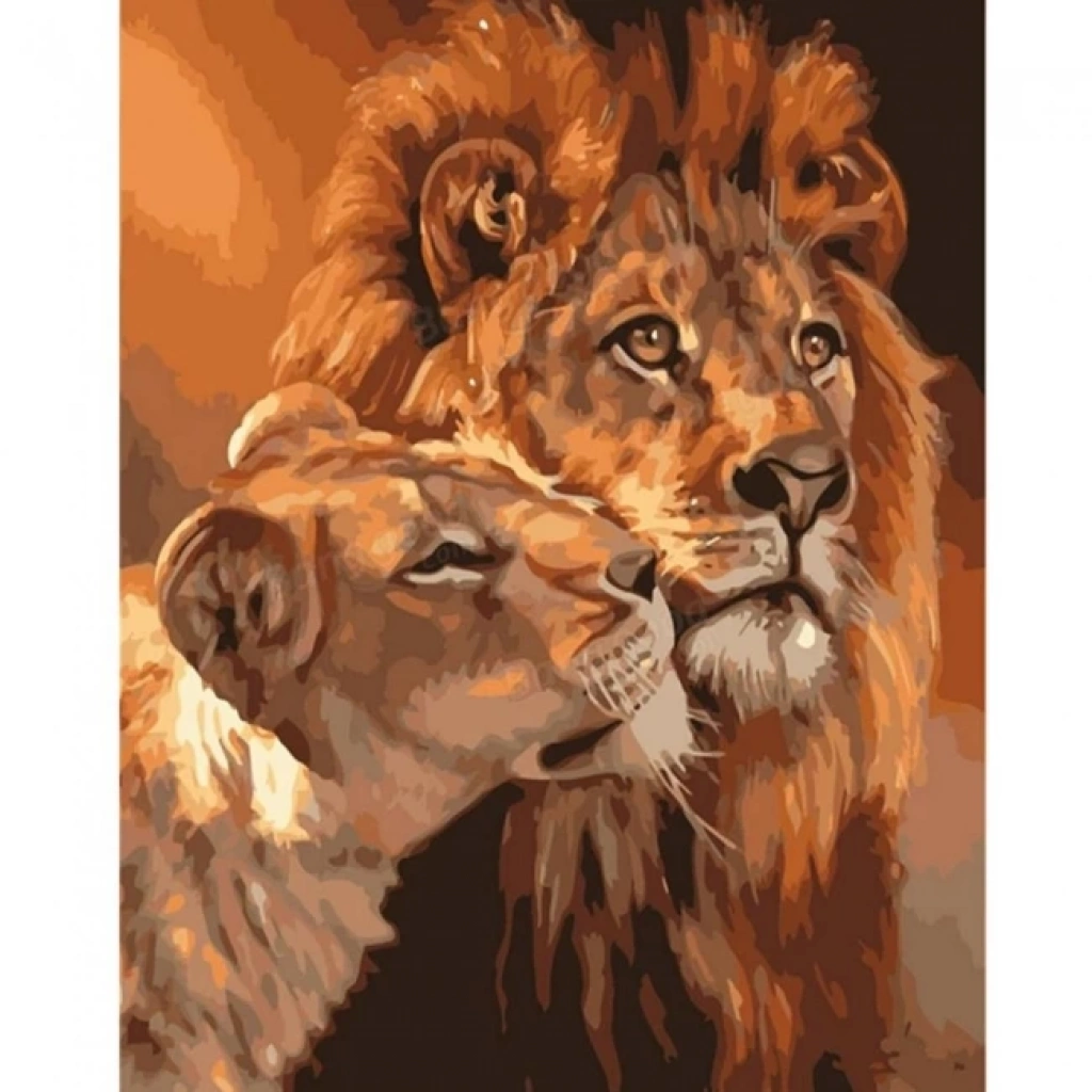 Kanvas Sayılarla Boyama Seti Kasnaklı-çerçeveli Aslanların Aşkı