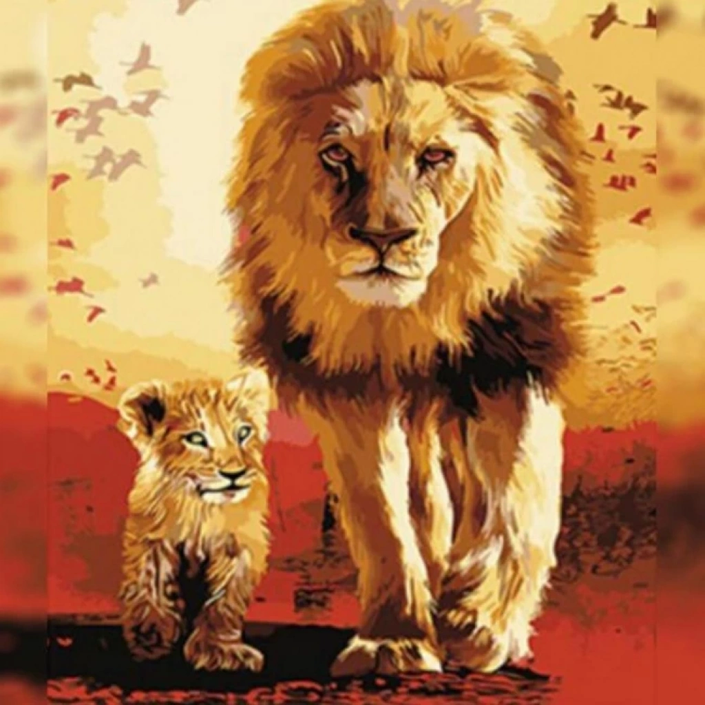 Kanvas Sayılarla Boyama Seti Kasnaklı-çerçeveli Baba Oğul Aslan