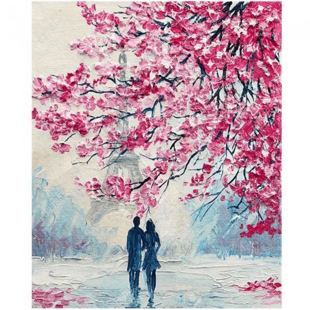 Kanvas Sayılarla Boyama Seti Kasnaklı-çerçeveli Baharda Aşk