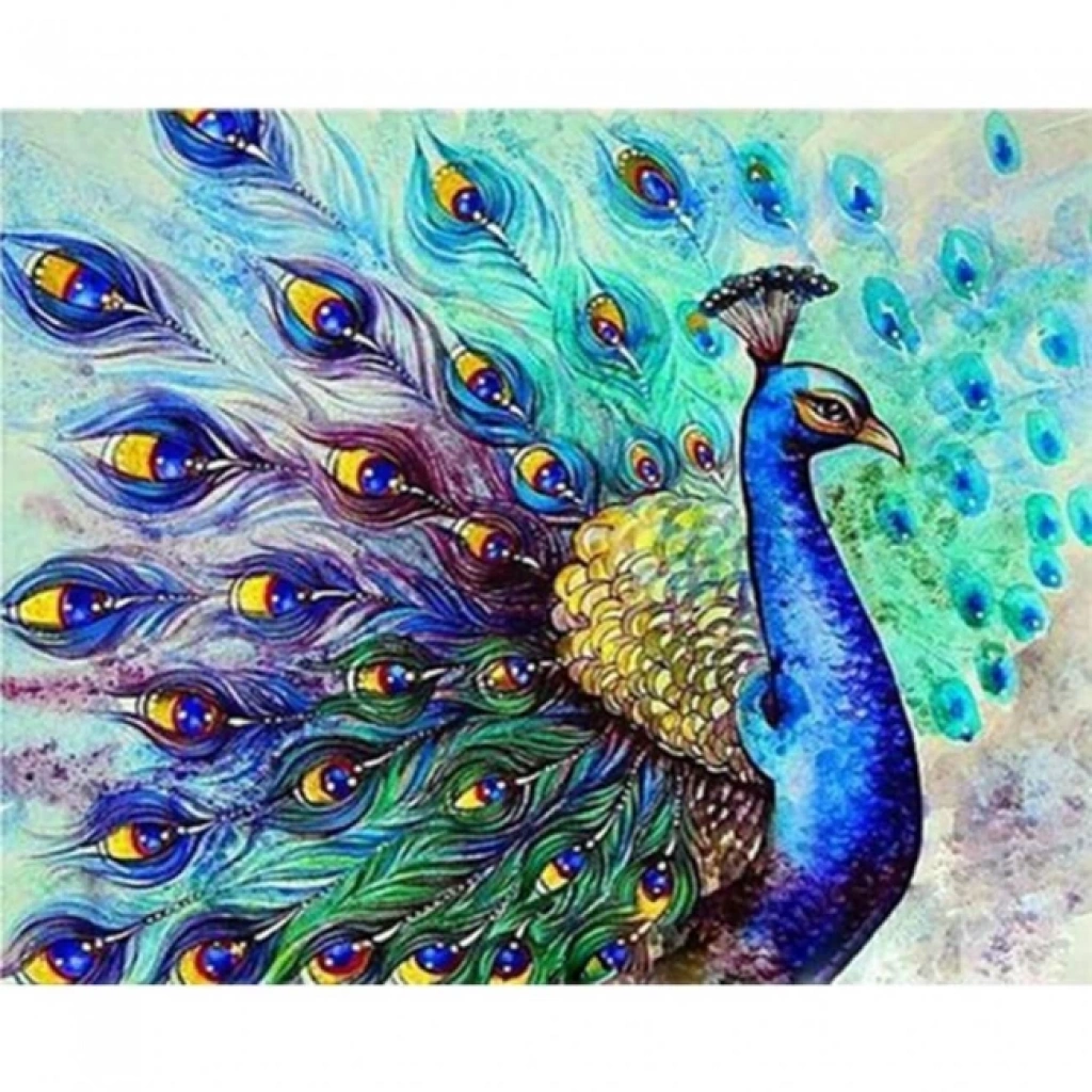 Kanvas Sayılarla Boyama Seti Kasnaklı-çerçeveli Bereket Tavus Kuşu