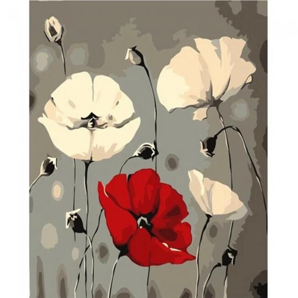 Kanvas Sayılarla Boyama Seti Kasnaklı-çerçeveli Beyaz Ve Kırmızı Gelincik