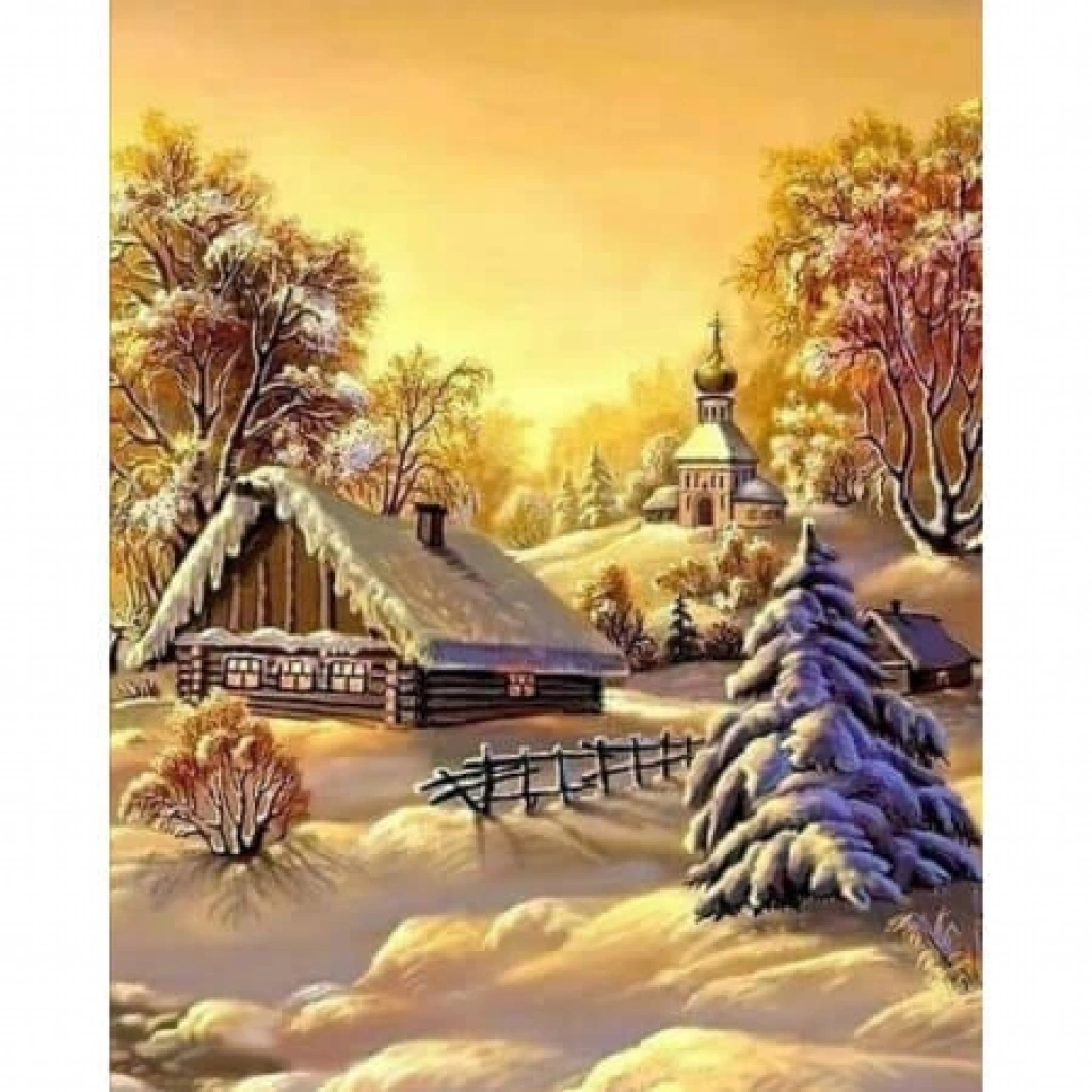 Kanvas Sayılarla Boyama Seti Kasnaklı-çerçeveli Bir Kış Manzarası
