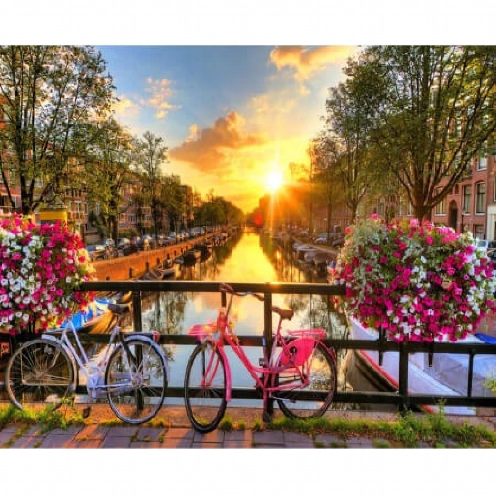 Kanvas Sayılarla Boyama Seti Kasnaklı-çerçeveli Bisikletle Nehir Gezintisi