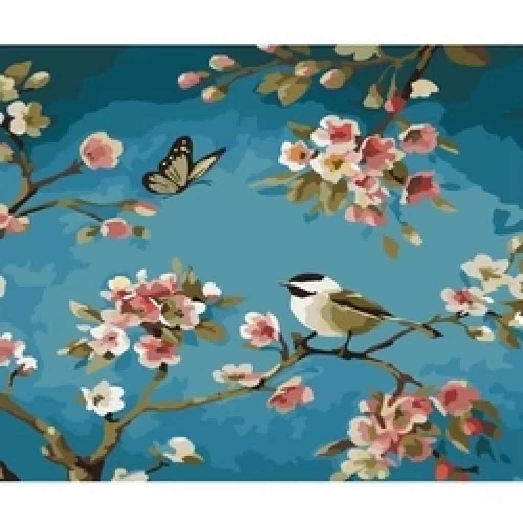 Kanvas Sayılarla Boyama Seti Kasnaklı-çerçeveli Daldaki Kuşlar 1