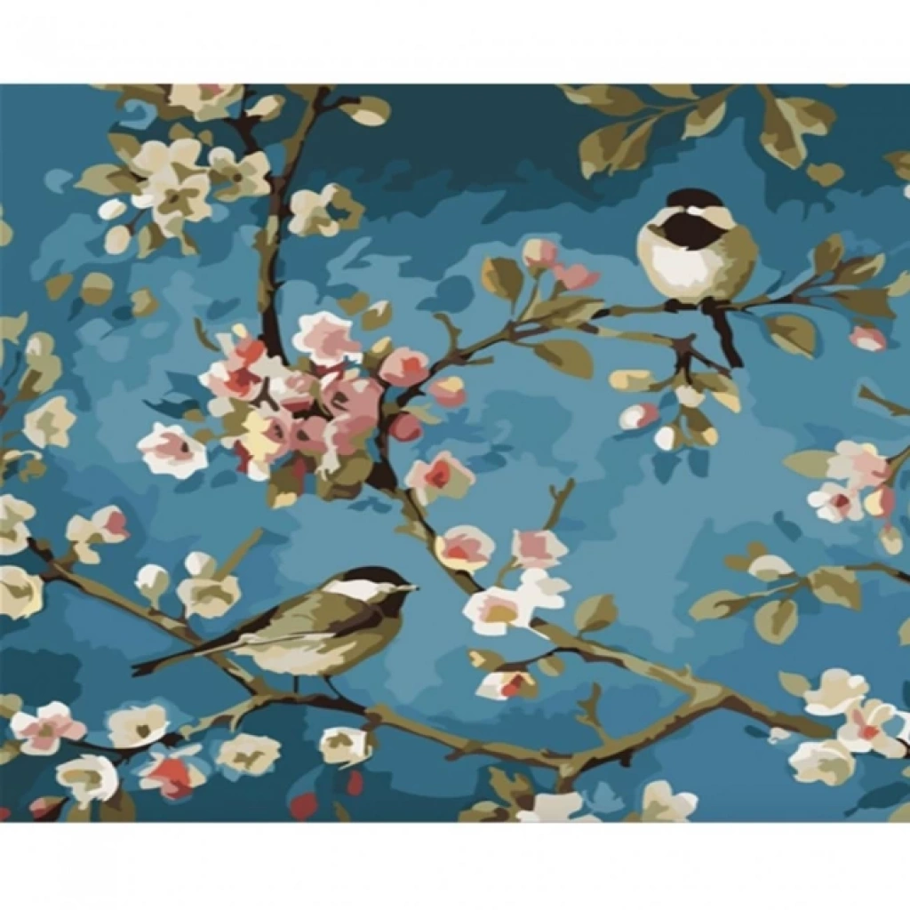 Kanvas Sayılarla Boyama Seti Kasnaklı-çerçeveli Daldaki Kuşlar 3