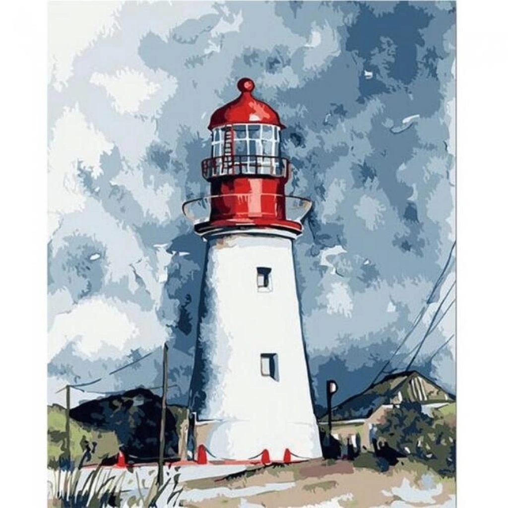 Kanvas Sayılarla Boyama Seti Kasnaklı-çerçeveli Deniz Feneri Ve Bulutlar