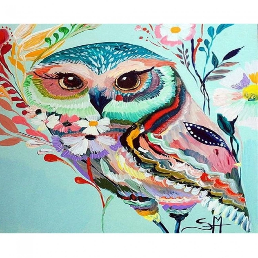 Kanvas Sayılarla Boyama Seti Kasnaklı-çerçeveli Desenli Baykuş