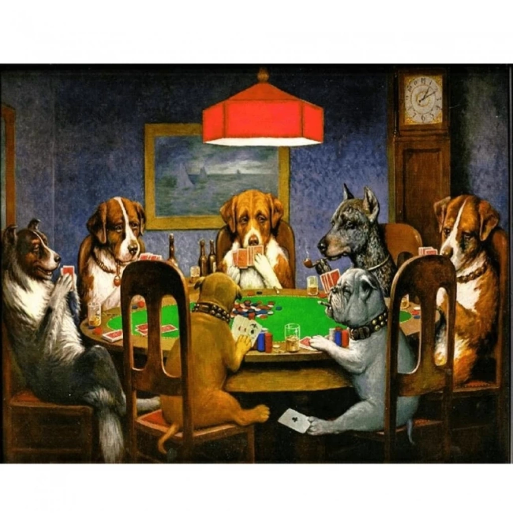 Kanvas Sayılarla Boyama Seti Kasnaklı-çerçeveli Dog Poker