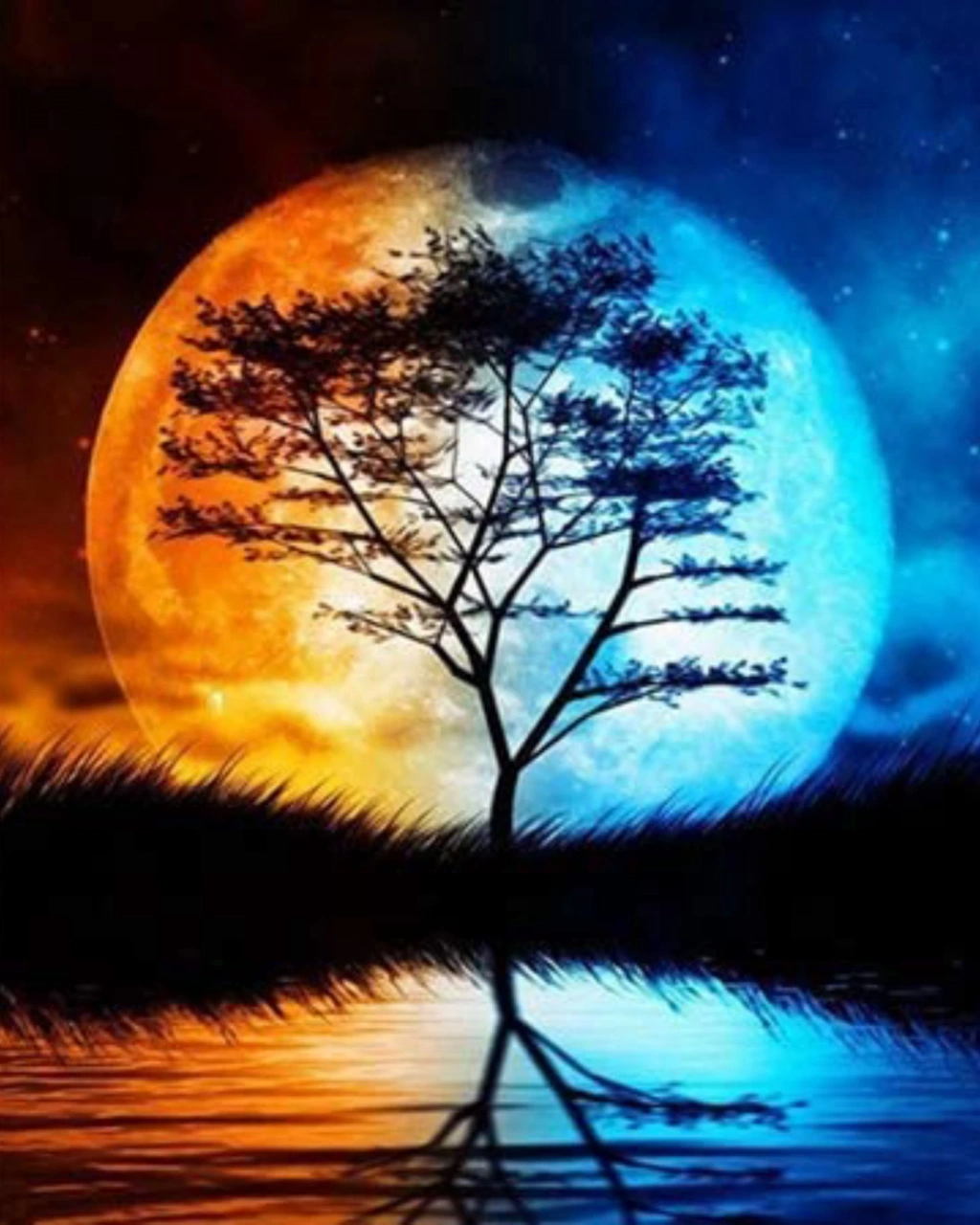 Kanvas Sayılarla Boyama Seti Kasnaklı-çerçeveli Dolunay Ağacı Sayılarla Boyama