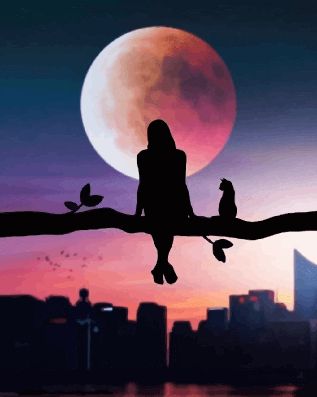 Kanvas Sayılarla Boyama Seti Kasnaklı-çerçeveli Dolunayda Manzara Keyfi Sayılarla Boyama