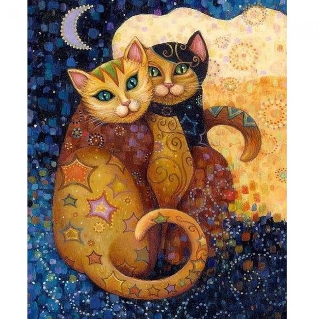 Kanvas Sayılarla Boyama Seti Kasnaklı-çerçeveli Gece Ve Gündüz Kedilerin Aşkı