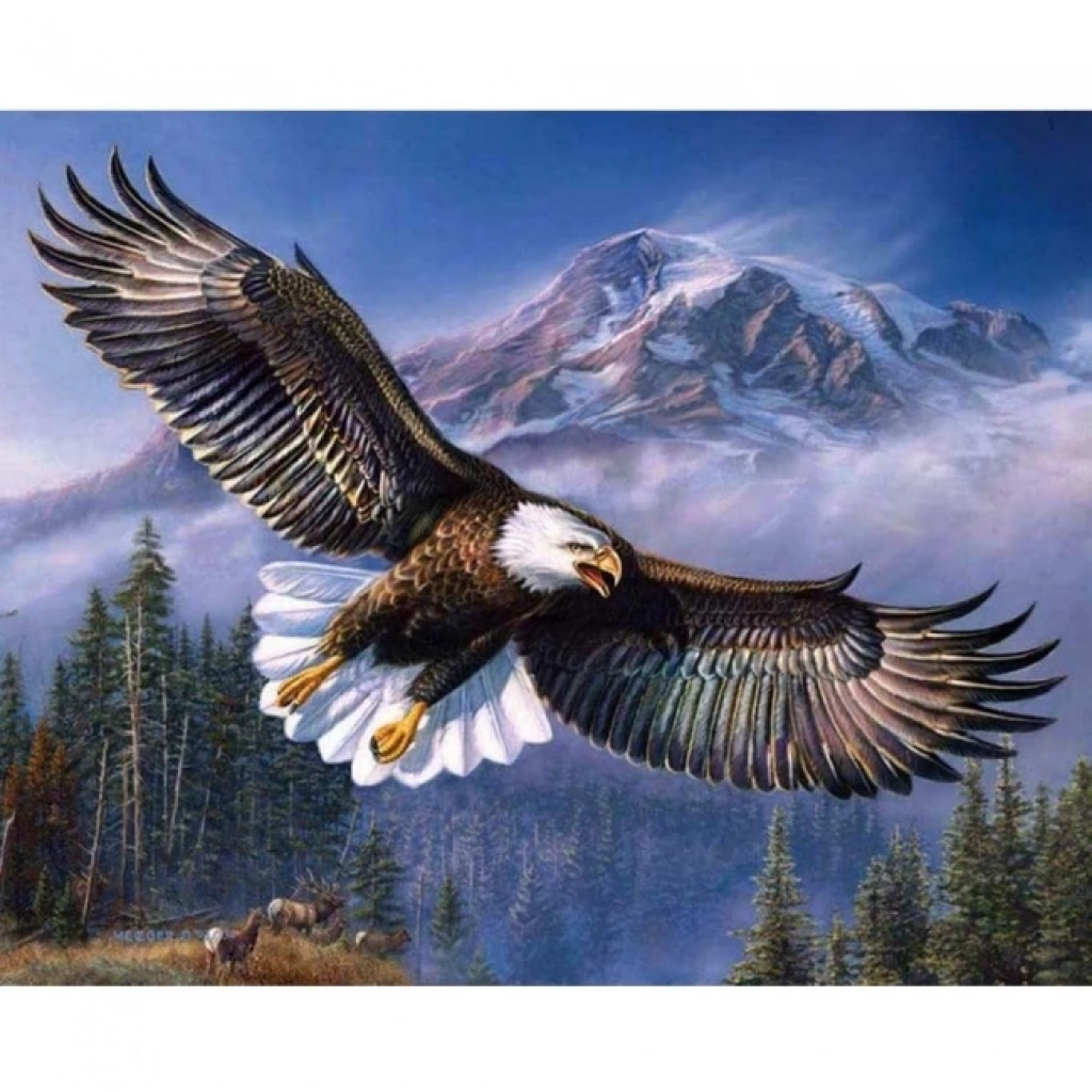 Kanvas Sayılarla Boyama Seti Kasnaklı-çerçeveli Gökteki Kartal