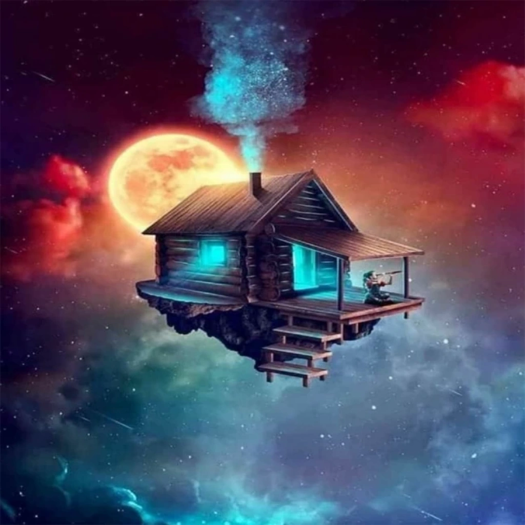 Kanvas Sayılarla Boyama Seti Kasnaklı-çerçeveli Gökyüzünde Yaşam