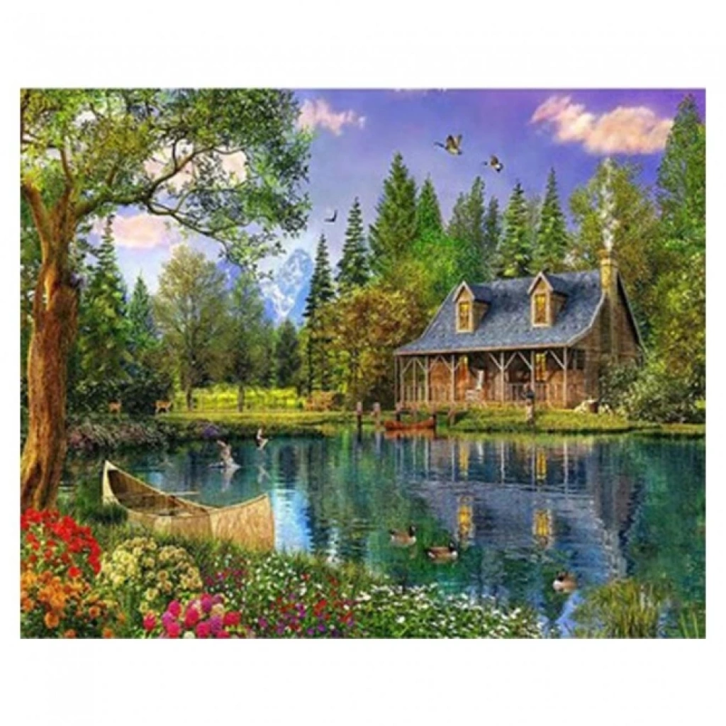 Kanvas Sayılarla Boyama Seti Kasnaklı-çerçeveli Göl Evi