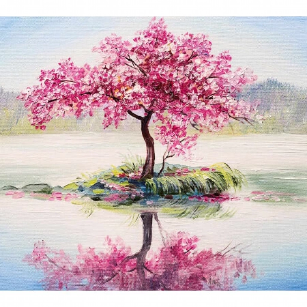 Kanvas Sayılarla Boyama Seti Kasnaklı-çerçeveli Göldeki Ağaç