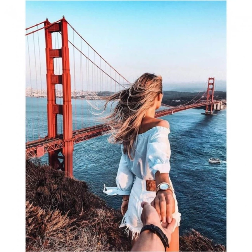 Kanvas Sayılarla Boyama Seti Kasnaklı-çerçeveli Golden Gate'te Aşk
