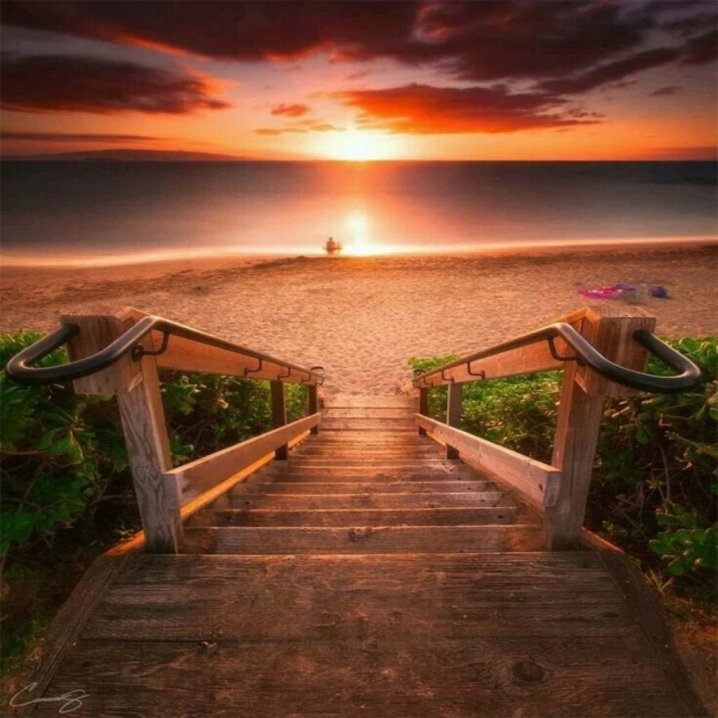 Kanvas Sayılarla Boyama Seti Kasnaklı-çerçeveli Gün Batımı Ve Merdiveni