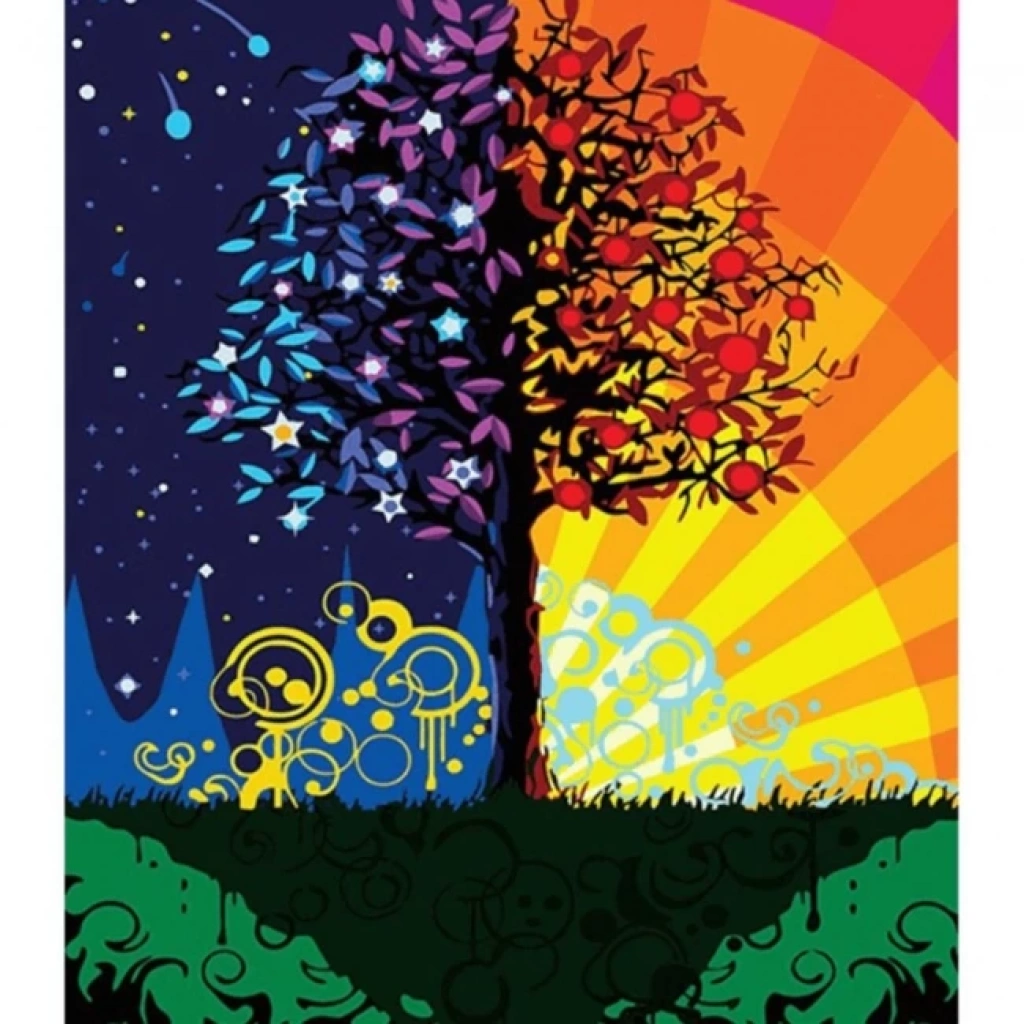 Kanvas Sayılarla Boyama Seti Kasnaklı-çerçeveli Gündüz Gece Ve Ağaç