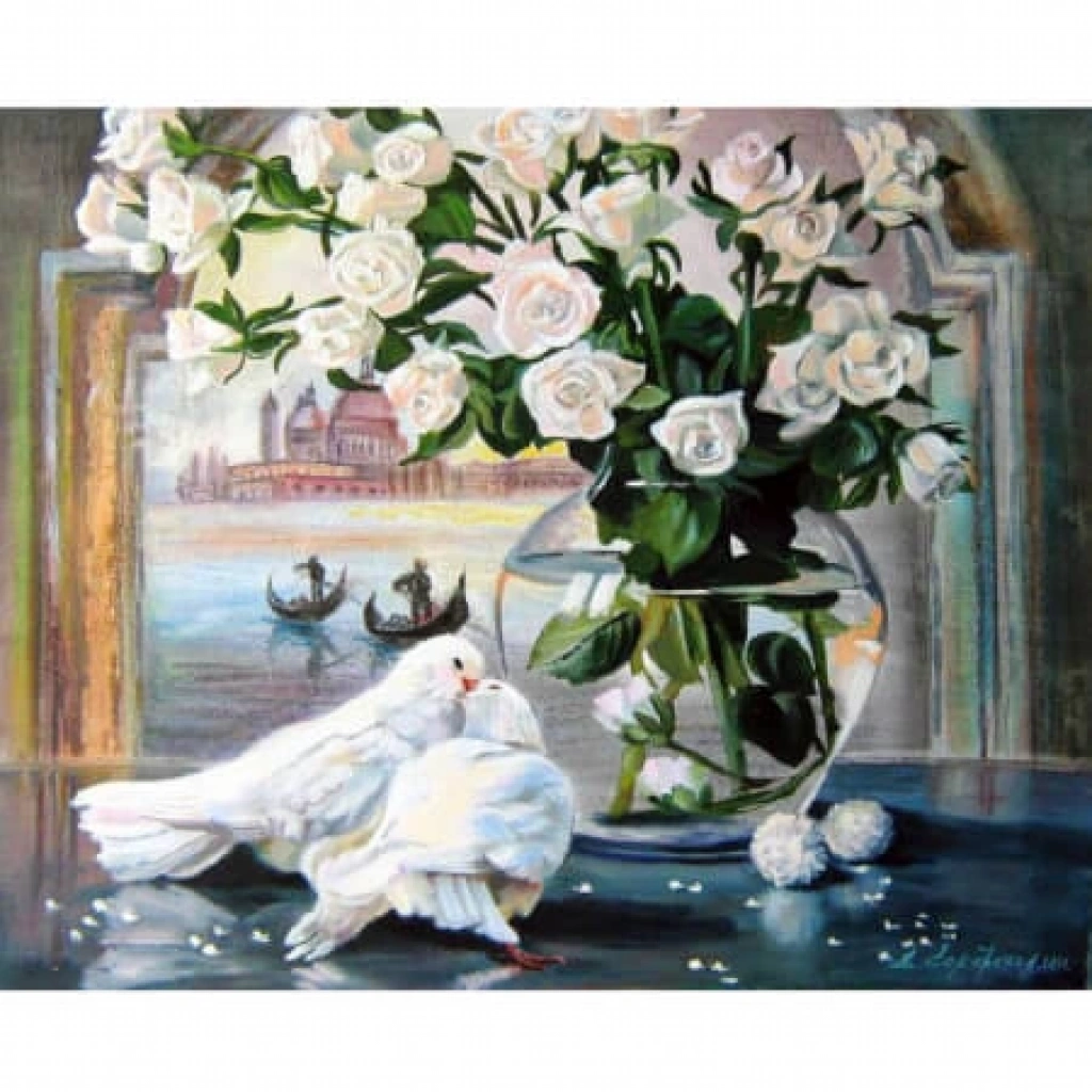 Kanvas Sayılarla Boyama Seti Kasnaklı-çerçeveli Güvercin Ve Çiçek