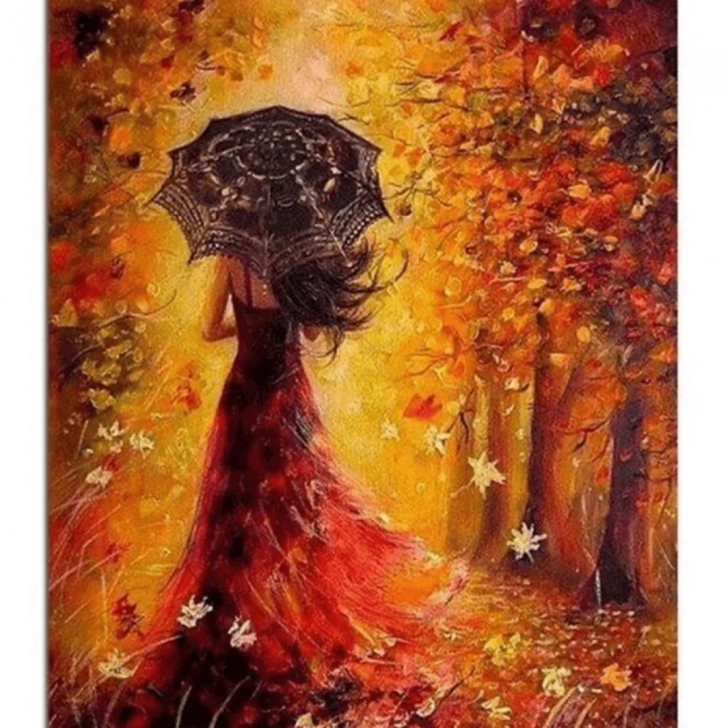 Kanvas Sayılarla Boyama Seti Kasnaklı-çerçeveli Güz Güzeli