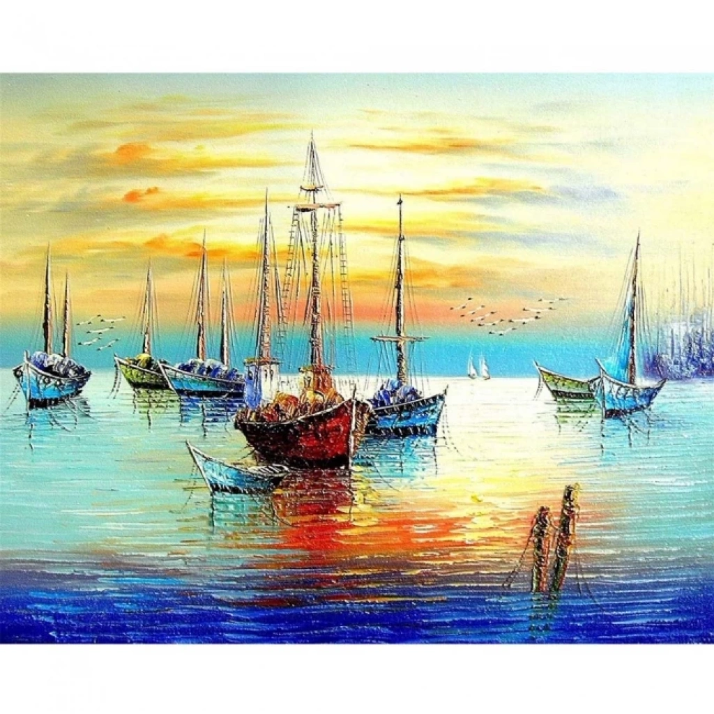 Kanvas Sayılarla Boyama Seti Kasnaklı-çerçeveli Güzel Bir Günde Yelkenliler