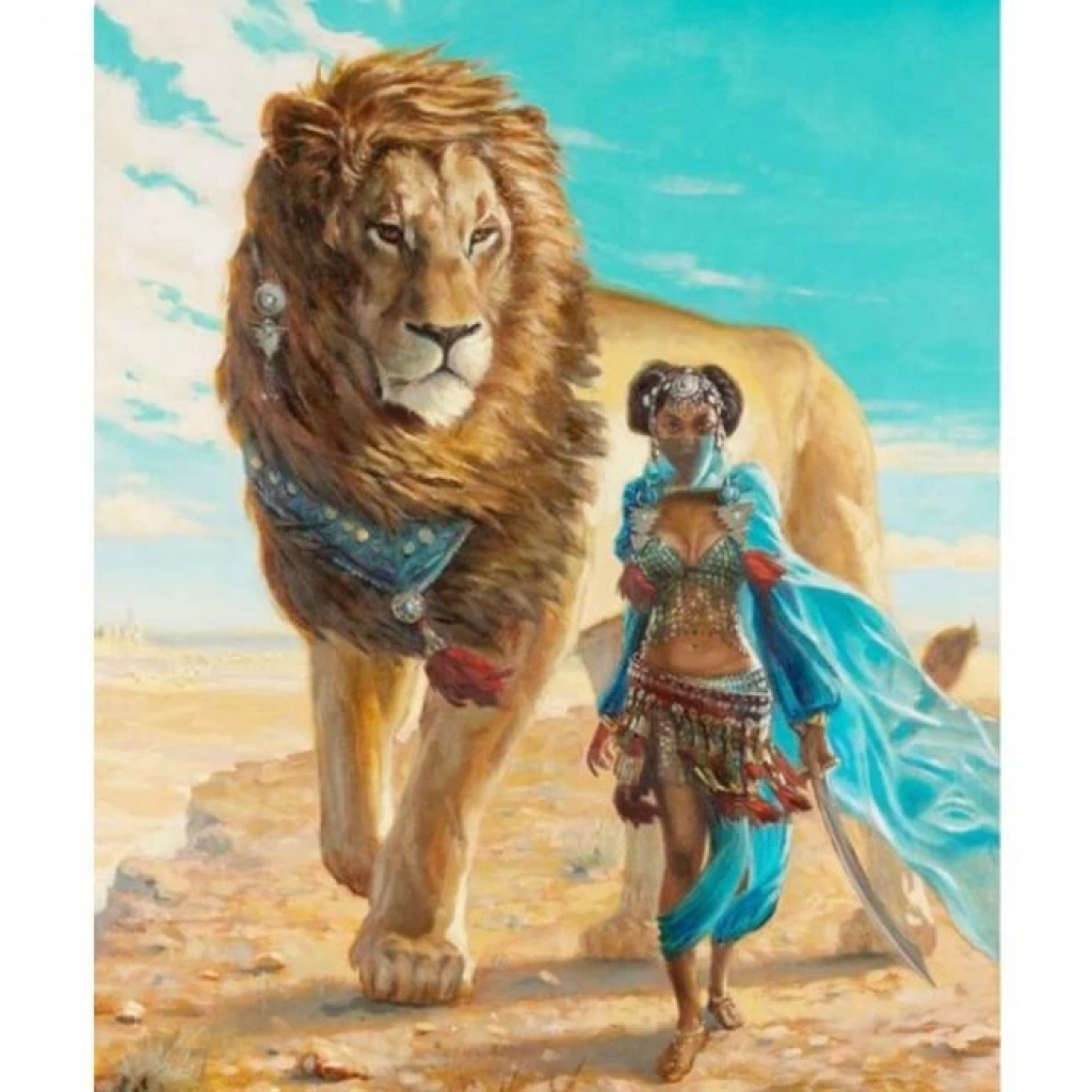 Kanvas Sayılarla Boyama Seti Kasnaklı-çerçeveli Güzel Ve Aslan Sayılarla Boyama