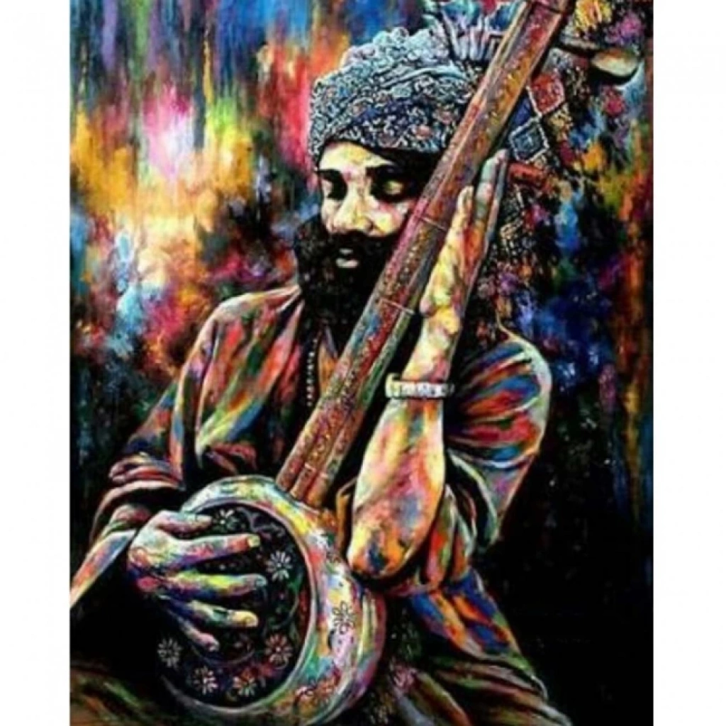 Kanvas Sayılarla Boyama Seti Kasnaklı-çerçeveli Hintli Sanatcı