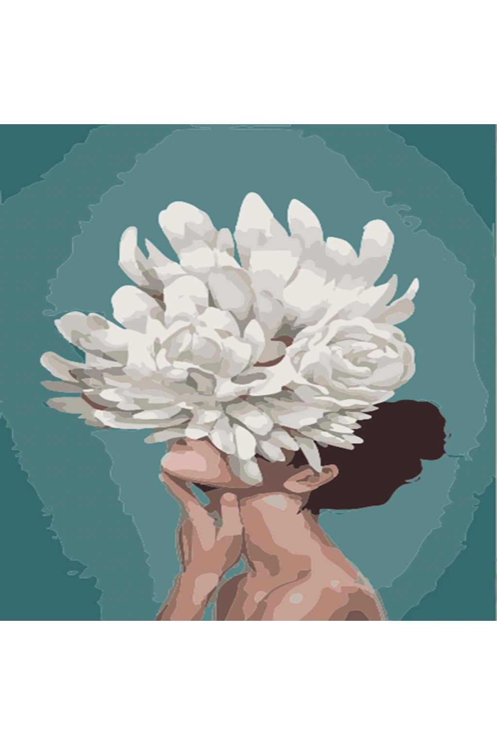 Kanvas Sayılarla Boyama Seti Kasnaklı-çerçeveli Kadın Beyaz Çiçek