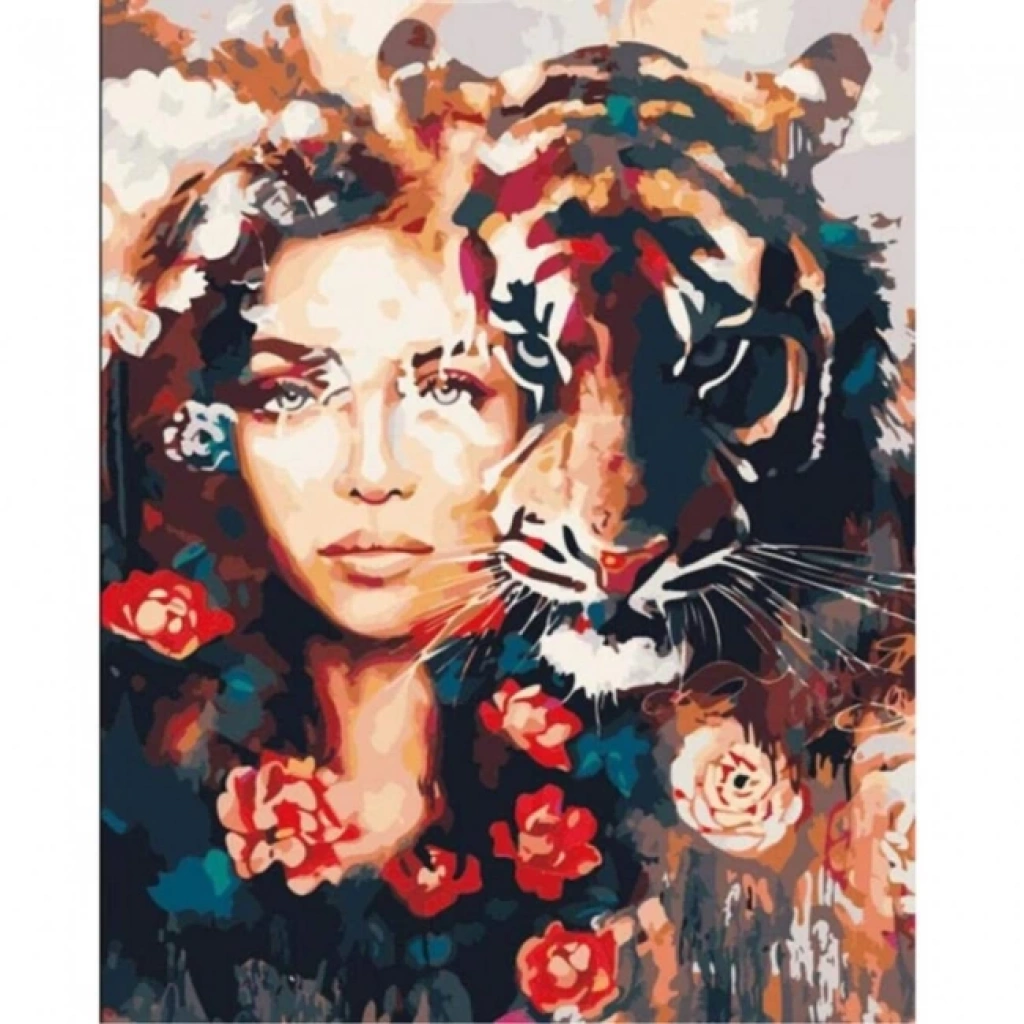 Kanvas Sayılarla Boyama Seti Kasnaklı-çerçeveli Kadın Ve Kaplan Sevgisi