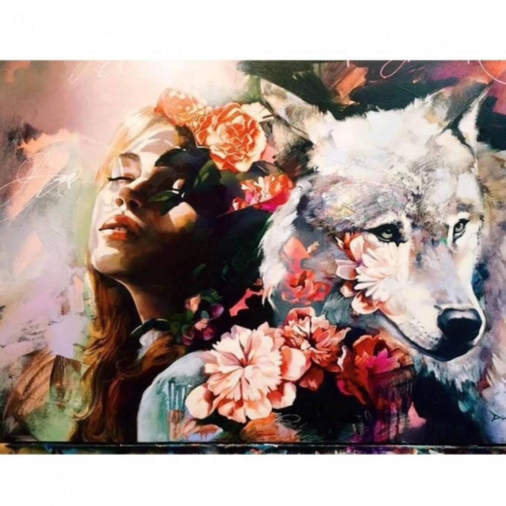 Kanvas Sayılarla Boyama Seti Kasnaklı-çerçeveli Kadın Ve Kurt Sevgisi