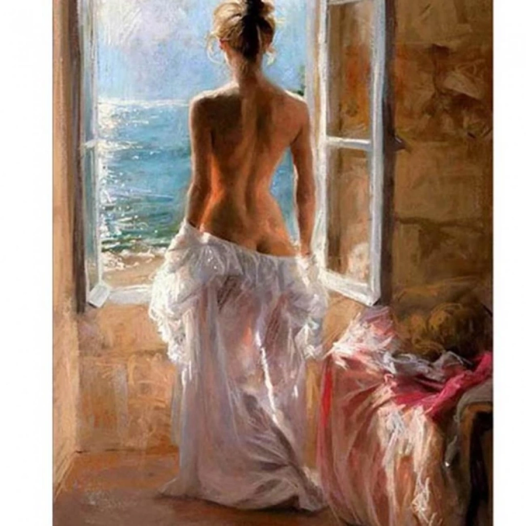 Kanvas Sayılarla Boyama Seti Kasnaklı-çerçeveli Kadın Ve Manzara