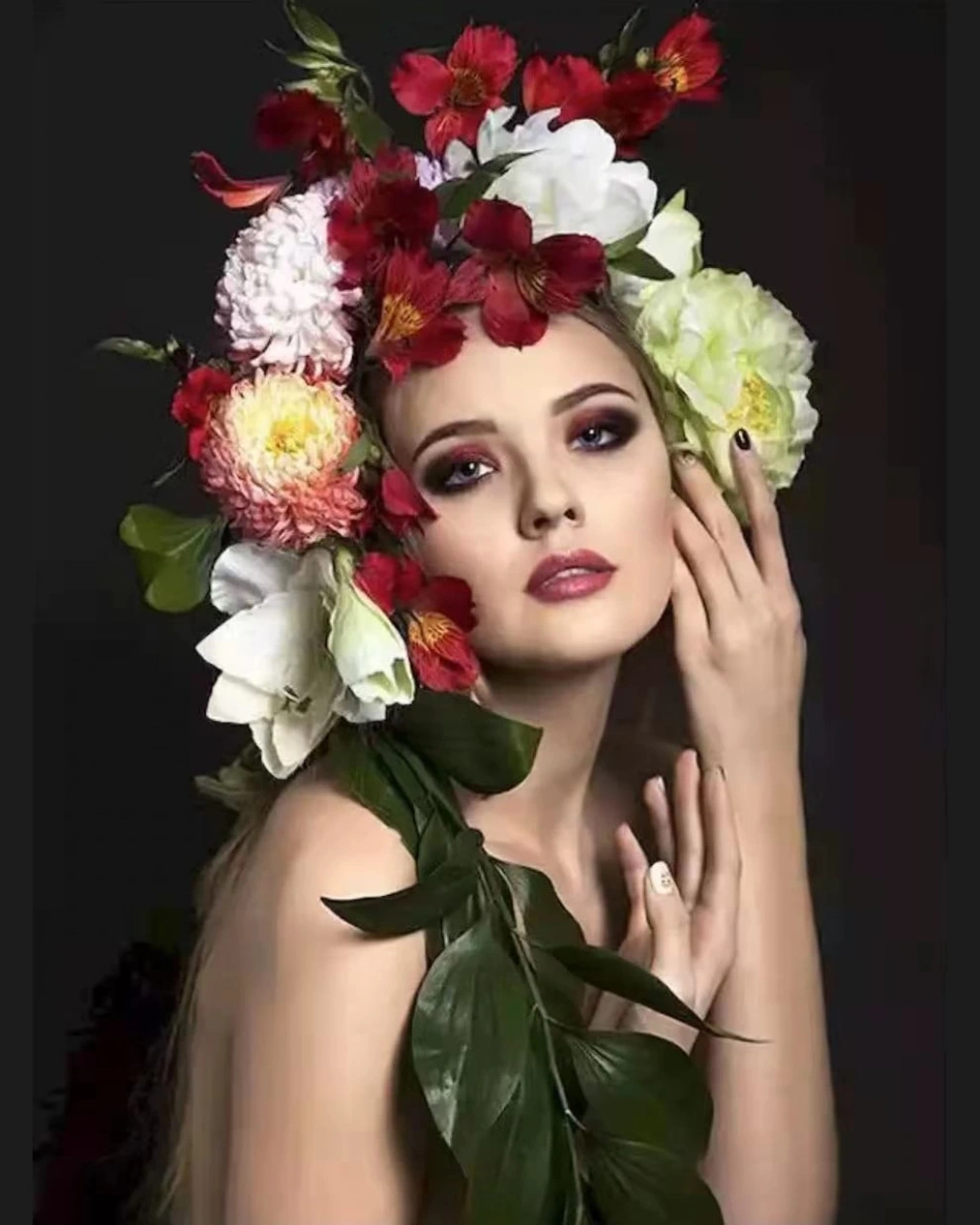 Kanvas Sayılarla Boyama Seti Kasnaklı-çerçeveli Kadının Çiçek Duruşu 5 Sayılarla Boyama