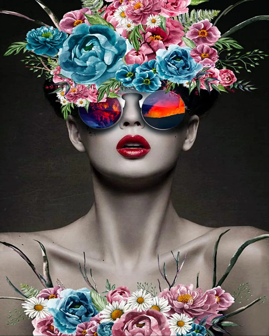 Kanvas Sayılarla Boyama Seti Kasnaklı-çerçeveli Kadının Çiçek Duruşu 7 Sayılarla Boyama