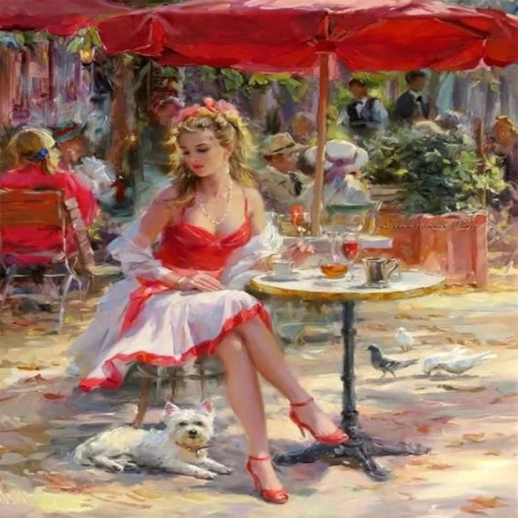 Kanvas Sayılarla Boyama Seti Kasnaklı-çerçeveli Kafedeki Güzel Kadın