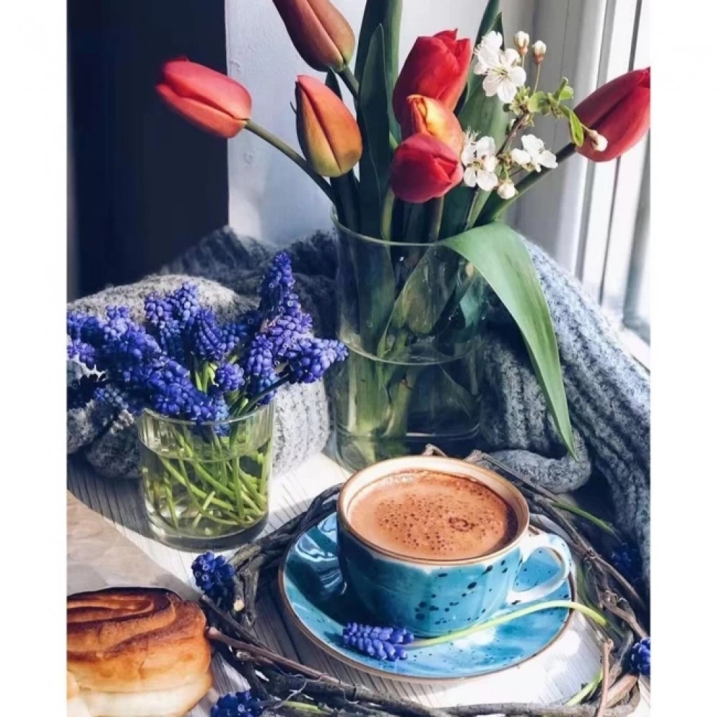 Kanvas Sayılarla Boyama Seti Kasnaklı-çerçeveli Kahve Keyfi