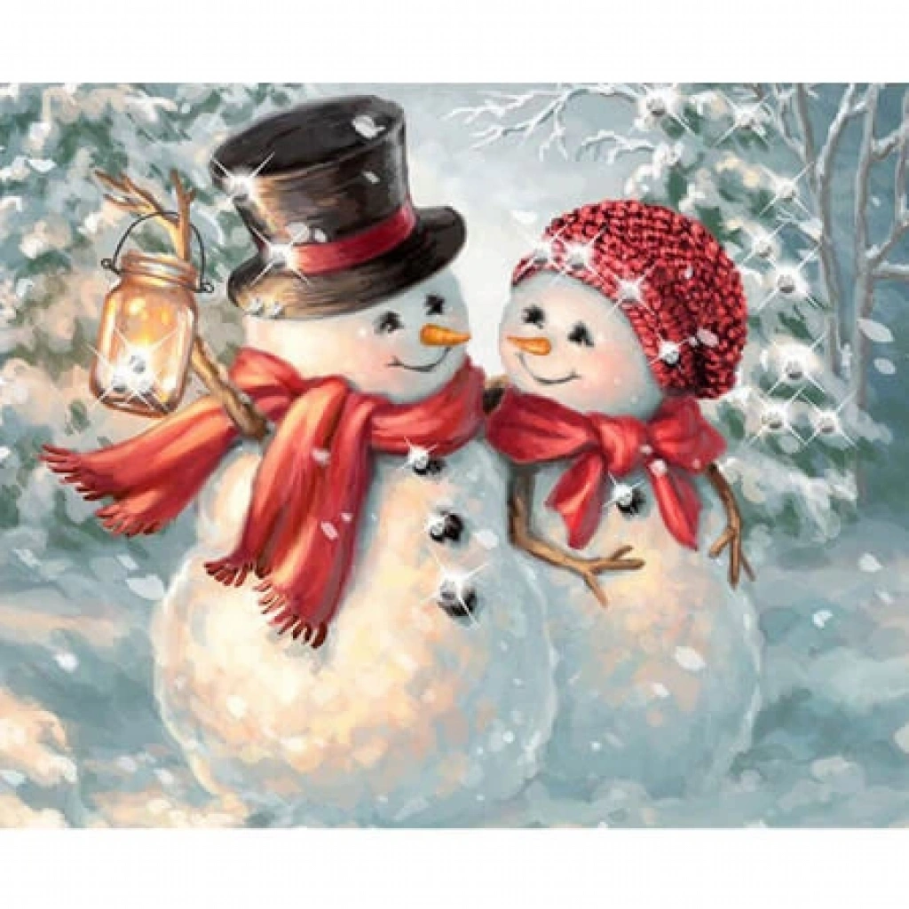 Kanvas Sayılarla Boyama Seti Kasnaklı-çerçeveli Kardan Adamın Aşkı