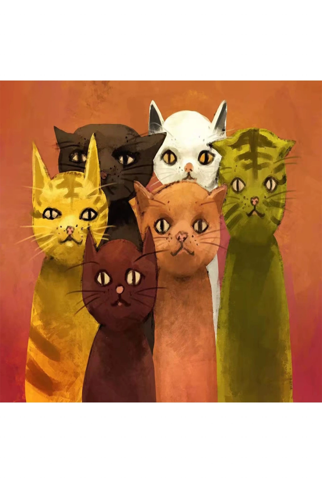 Kanvas Sayılarla Boyama Seti Kasnaklı-çerçeveli Kedilerin Bakışı